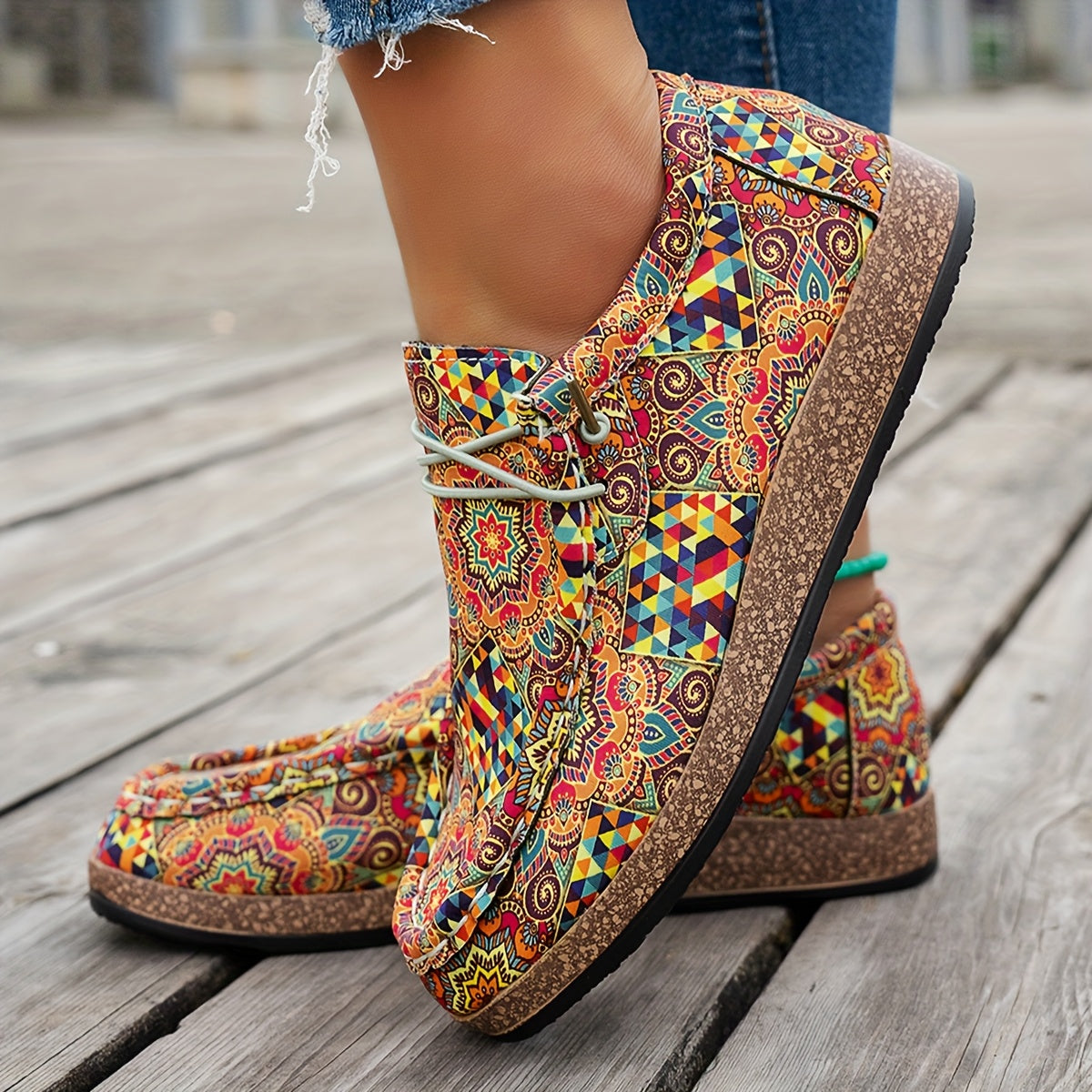 Perfekt zu Jeans, lässigen Kleidern oder Boho-Outfits, verleihen diese Schnürschuhe jedem Look einen Hauch von Charakter und Kreativität.